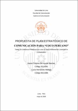 Del Aguila Sánchez, K. C. y Hernández Málaga, L. (2019). Propuesta de plan estratégico de comunicación para “Coco Peruano” (trabajo de suficiencia profesional para optar el título profesional de Licenciado en Comunicación). Universidad de Lima.Editor