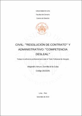 Zorrilla De La Cuba, A. A. (2019). Civil: "resolución de contrato" y administrativo: "competencia desleal" (trabajo de suficiencia profesional para optar el título profesional de Abogado). Universidad de Lima.Editor
