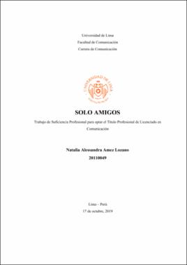 Amez Lozano, N. A. (2019). Solo amigos (trabajo de suficiencia profesional para optar el título profesional de Licenciado en Comunicación). Universidad de Lima.Editor