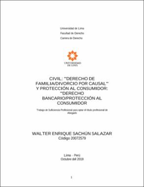 Sachun Salazar, W. E. (2019). Civil: "derecho de familia/divorcio por causal" y protección al consumidor: "derecho bancario/protección al consumidor" (trabajo de suficiencia profesional para optar el título profesional de Abogado). Universidad de Lima. https://hdl.handle.net/20.500.12724/10075Editor