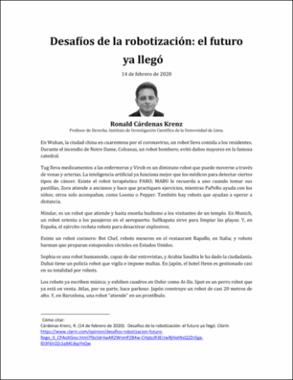 Cárdenas Krenz, A. (14 de febrero de 2020). Desafíos de la robotización: el futuro ya llegó. Clarín. Recuperado de https://bit.ly/3bMxImzEditor