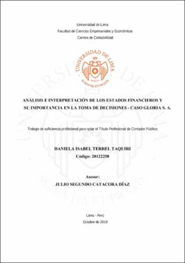 Análisis e interpretación de los estados financieros y su importancia en la toma de decisiones - Caso Gloria S. A.