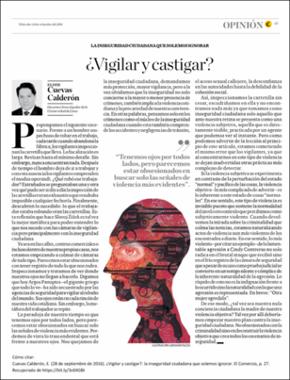 Cuevas Calderón, E. (28 de septiembre de 2016). ¿Vigilar y castigar?: la inseguridad ciudadana que solemos ignorar. El Comercio, p. 27. Recuperado de https://bit.ly/3c6XGBtEditor