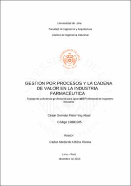 Flemming Abad, C. G. (2019). Gestión por procesos y la cadena de valor en la industria farmacéutica (trabajo de suficiencia profesional para optar el título profesional de Ingeniero Industrial). Universidad de Lima.Editor