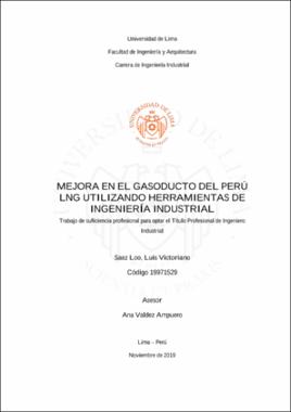 Saez Loo, L. V. (2019). Mejora en el gasoducto del PERÚ LNG utilizando herramientas de ingeniería industrial (trabajo de suficiencia profesional para optar el título profesional de Ingeniero Industrial). Universidad de Lima.Editor