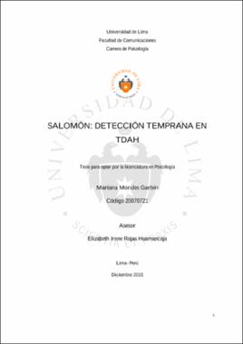 Morales Garbin, M. (2015). Salomón: detección temprana en TDAH (tesis para optar el título profesional de Licenciada en Psicología). Universidad de Lima.Editor