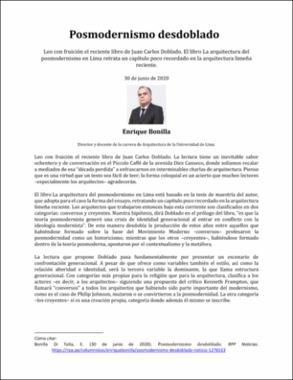 Bonilla Di Tolla, E. (30 de junio de 2020). Posmodernismo desdoblado. RPP Noticias. https://rpp.pe/columnistas/enriquebonilla/posmodernismo-desdoblado-noticia-1276533Editor
