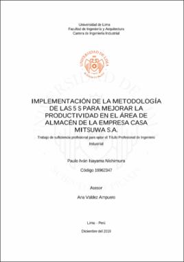 Implementación de la metodología de las 5 S para mejorar la productividad en el área de almacén de la empresa casa Mitsuwa S.A.