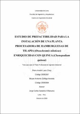 Estudio de prefactibilidad para la instalación de una planta procesadora de hamburguesas de tilapia (Oreochromis niloticus) enriquecidas con quinua (Chenopodium quinoa)