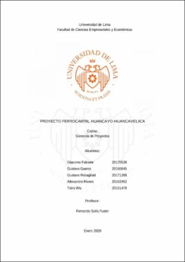 Falcone, G., Guerra, G., Rebagliati, G. Rivera, A. y Wu, T. (2020). Proyecto Ferrocarril Huancayo-Huancavelica [trabajo de fin de curso]. Universidad de Lima, Facultad de Ciencias Empresariales y Económicas, Carrera de Administración.Editor