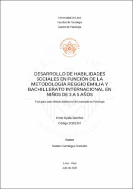 Ayala Sánchez, I. (2020). Desarrollo de habilidades sociales en función de la metodología Reggio Emilia y bachillerato internacional en niños de 3 a 5 años [Tesis para optar el título profesional de Licenciado en Psicología, Universidad de Lima]. Repositorio Institucional ULima. https://hdl.handle.net/20.500.12724/11706Editor