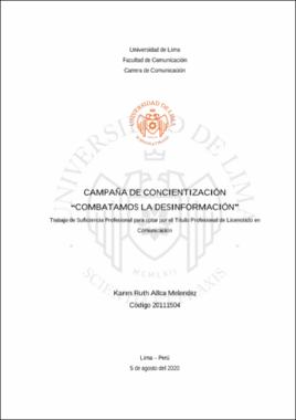Allca Melendez, K. R. (2020). Campaña de concientización "Combatamos la desinformación" [Trabajo de suficiencia profesional para optar el Título Profesional de Licenciado en Comunicación, Universidad de Lima]. Repositorio Institucional Ulima. https://hdl.handle.net/20.500.12724/11713Editor