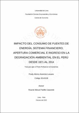 Impacto del consumo de fuentes de energía, sistema financiero, apertura comercial e ingreso en la degradación ambiental en el Perú desde 1971 al 2014