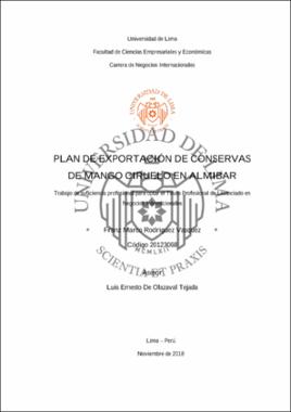 Rodriguez Vasquez, F. M. (2018). Plan de exportación de conservas de mango ciruelo en almíbar [Trabajo de suficiencia profesional para optar el Título Profesional de Licenciado en Negocios Internacionales, Universidad de Lima]. Repositorio Institucional de la Universidad de Lima. https://hdl.handle.net/20.500.12724/11716Editor