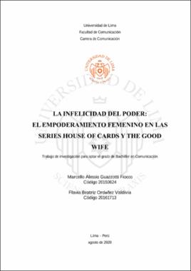 Ordoñez Valdivia, F. B. y Guazzotti Fiocco, M. A. (2020). La infelicidad del poder: el empoderamiento femenino en las series House of Cards y The Good Wife. [Trabajo de investigación para optar el grado de Bachiller en Comunicación, Universidad de Lima]. Repositorio ULima. https://hdl.handle.net/20.500.12724/11811Editor