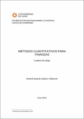Gutiérrez Villaverde, H. E. (2020). Métodos cuantitativos para finanzas : cuaderno de trabajo. Universidad de Lima, Facultad de Ciencias Empresariales y Económicas, Carrera de Contabilidad.Editor