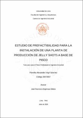 Vigil Sánchez, F. A. (2020). Estudio de prefactibilidad para la instalación de una planta de producción de jelly shots a base de pisco [Tesis para optar el Título Profesional de Ingeniero Industrial, Universidad de Lima]. Repositorio ULima. https://hdl.handle.net/20.500.12724/12025Editor
