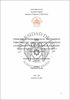La investigación aborda los principales problemas, así como alternativas de solución, que presenta el crédito tributario por reinversión en la educación de acuerdo con la regulación de la Ley de Promoción de la Inversión en la Educación.