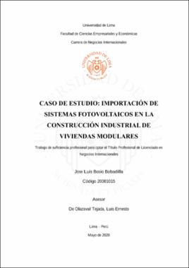 Bosio Bobadilla, J. L. (2020). Caso de estudio: importación de sistemas fotovoltaicos en la construcción industrial de viviendas modulares [Trabajo de suficiencia profesional para optar el título profesional de Licenciado en Negocios Internacionales, Universidad de Lima]. Repositorio Institucional de la Universidad de Lima. https://hdl.handle.net/20.500.12724/12092Editor