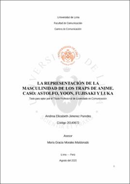 Jimenez Paredes, A. E. (2020). La representación de la masculinidad de los traps de anime. Caso: Astolfo, Yoon, Fujisaki y Luka [Tesis para optar el Título Profesional de Licenciado en Comunicación, Universidad de Lima]. Repositorio Institucional de la Universidad de Lima.Editor