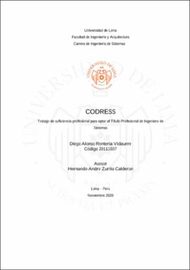Renteria-Vidaurre, D. A. (2020). CODRESS [Trabajo de suficiencia profesional para optar el Título Profesional de Ingeniero de Sistemas, Universidad de Lima]. Repositorio Institucional de la Universidad de Lima. https://hdl.handle.net/20.500.12724/12337Editor