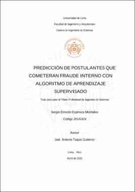 Espinoza Montalvo, S. E. (2020). Predicción de postulantes que cometerán fraude interno con algoritmo de aprendizaje supervisado [Tesis para optar el Título Profesional de Ingeniero de Sistemas, Universidad de Lima]. Repositorio institucional de la Universidad de Lima. https://hdl.handle.net/20.500.12724/12355Editor