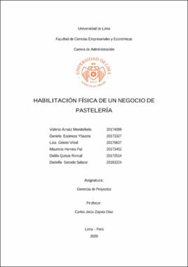 de Gerencia de Proyectos se ha planteado crear el proyecto que se titula “Habilitación física de una pastelería”. La clienta comenta que siempre fue uno de sus sueños y, ahora que se graduó, puede hacerlo finalmente realidad. According to the request of Luciana García, a graduate of the Le Cordon Bleu institute, a general planning will be carried out on the opening of her first bakery in Lima, for which she has requested our help. For this reason, as a proposal for the course
