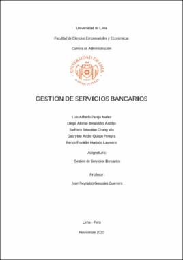 Trabajo de investigación para la asignatura Gestión de Servicios Bancarios. Revisado por el profesor Ivan Reynaldo Gonzales Guerrero, responsable de la asignatura.