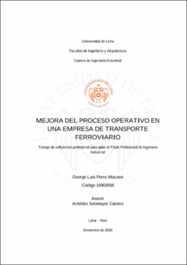 Pérez Macassi, G. L. (2020). Mejora del proceso operativo en una empresa de transporte ferroviario [Trabajo de suficiencia profesional para optar el Título Profesional de Ingeniero Industrial, Universidad de Lima]. Repositorio institucional de la Universidad de Lima. https://hdl.handle.net/20.500.12724/12692Editor