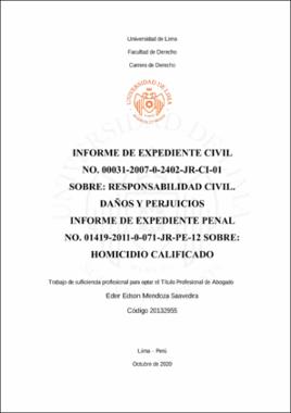 Informe de expediente civil N° 00031-2007-0-2402-JR-CI-01 sobre: responsabilidad civil. Daños y perjuicios. Informe de expediente penal N° 01419-2011-0-071-JR-PE-12 sobre: homicidio calificado