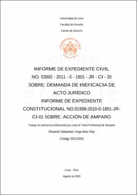 Informe de expediente Civil No. 03992 – 2011 – 0 – 1801 – JR – CI – 20 sobre: Demanda de ineficacia de acto jurídico. Informe de expediente Constitucional No.01958-2010-0-1801-JR-CI-01 sobre: Acción de Amparo