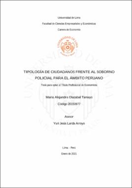 Olazabal Tamayo, M. A. (2021). Tipología de ciudadanos frente al soborno policial para el ámbito peruano [ Tesis para optar el Título Profesional de Economista, Universidad de Lima]. Repositorio de la Universidad de LimaEditor