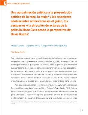 Una aproximación estética a la presentación satírica de la raza, la mujer y las relaciones adolescentes americanas en el guion, los vestuarios y la dirección de actores de la película Mean Girls desde la perspectiva de Davis Ryalls