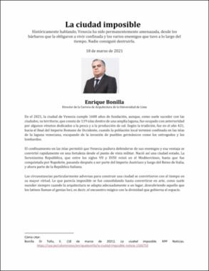 Bonilla Di Tolla, E. (18 de marzo de 2021). La ciudad imposible. RPP Noticias. https://rpp.pe/columnistas/enriquebonilla/la-ciudad-imposible-noticia-1326753Editor