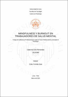 Cino Fernandez, C. (2021). Mindfulness y burnout en trabajadores de salud mental [Trabajo de suficiencia profesional para optar el Título Profesional de Licenciado en Psicología, Universidad de Lima]. Repositorio Institucional de la Universidad de Lima.Editor