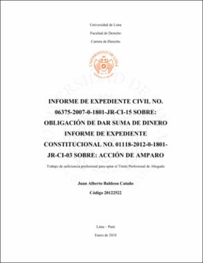 Informe de expediente civil No 06375-2007-0-1801-JR-CI-15 sobre: obligación de dar suma de dinero. Informe de expediente constitucional No: 01118-2012-0-1801-JR-CI-03 sobre: acción de amparo