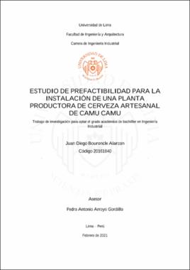 Bouroncle-Alarcon, J. D. (2021). Estudio de prefactibilidad para la instalación de una planta productora de cerveza artesanal de camu camu [Trabajo de Investigación para optar el grado de Bachiller en Ingeniería Industrial, Universidad de Lima]. Repositorio Institucional de la Universidad de Lima. https://hdl.handle.net/20.500.12724/13292Editor