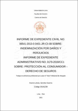 Informe de Expediente Civil No. 06541-2013-0-0401-JR-CI-08 sobre Indemnización por Daños y Perjuicios Informe de Expediente Administrativo No 0179-2018/CC1 sobre Protección al Consumidor – Derecho de Seguros