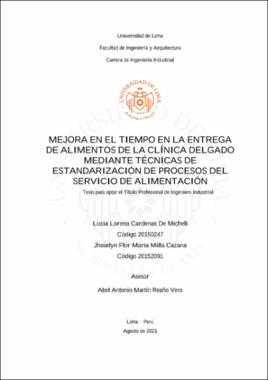 Mejora en el tiempo en la entrega de alimentos de la Clínica Delgado mediante técnicas de estandarización de procesos del servicio de alimentación