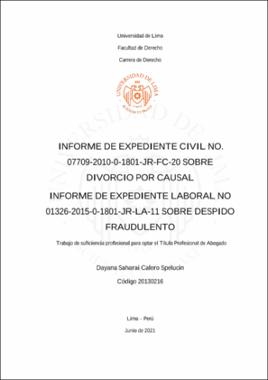 Informe de Expediente Civil No. 07709-2010-0-1801-JR-FC-20 Sobre Divorcio por Causal. Informe de Expediente Laboral No 01326-2015-0-1801-JR-LA-11 sobre Despido Fraudulento