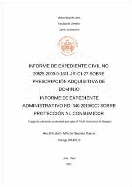 Informe de Expediente Civil No. 20525-2009-0-1801-JR-CI-27-Sobre Prescripción Adquisitiva de Dominio. Informe de Expediente Administrativo No. 340-2019/CC2 Sobre Protección al Consumidor