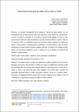 Soto Muñoz, F. K., Torres Chumacero, C., Gamarra Fernández, M. y Oblitas Vásquez, M. N. (2021). Financiamiento del gasto de público de los países en 2019 [trabajo de fin de curso]. Universidad de Lima, Facultad de Ciencias Empresariales y Económicas, Carrera de Economía.Editor