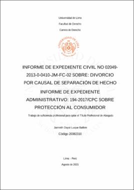 Informe de Expediente Civil No 02049-2013-0-0410-JM-FC-02 Sobre: Divorcio por Causal de Separación de Hecho. Informe de Expediente Administrativo: 194-2017/CPC Sobre Protección al Consumidor