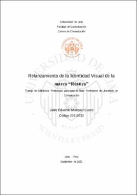 Marquez Cuzco, J. E.(2021). Relanzamiento de la Identidad Visual de la marca “Rústica” [Trabajo de suficiencia profesional para optar el Título Profesional de Licenciado en Comunicación, Universidad de Lima]. Repositorio Institucional de la Universidad de Lima. https://hdl.handle.net/20.500.12724/14750Editor