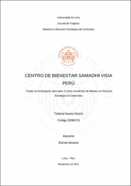 Novoa Osorio, T. (2021). Centro de bienestar Samadhi Vida Perú. [Trabajo de investigación para optar el grado académico de Maestro en Dirección Estratégica de Contenidos, Universidad de Lima]. Repositorio Institucional de la Universidad de Lima. https://hdl.handle.net/20.500.12724/14777Editor