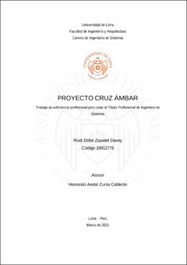 Zapatel Davey, R. D., (2021) Proyecto Cruz Ámbar [Trabajo de suficiencia profesional para optar el Título Profesional de Ingeniero de Sistemas, Universidad de Lima]. Repositorio Institucional de la Universidad deLima.https://hdl.handle.net/20.500.12724/14979Editor