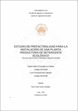 Portugal Las Heras, G. M. y Rios Salazar, L. F. (2021). Estudio de prefactibilidad para la instalación de una planta productora de detergente ecológico [Tesis para optar el Título Profesional de Ingeniero Industrial, Universidad de Lima]. Repositorio institucional de la Universidad de Lima. https://hdl.handle.net/20.500.12724/15019Editor