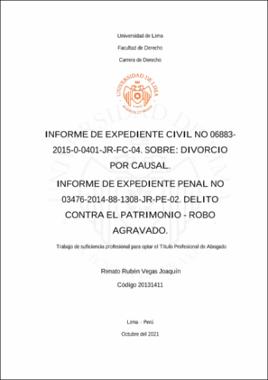 Informe de Expediente Civil No 06883-2015-0-0401-JR-FC-04. Sobre: Divorcio Por Causal. Informe de Expediente Penal No 03476-2014-88-1308-JR-PE-02. Delito Contra el Patrimonio - Robo Agravado.