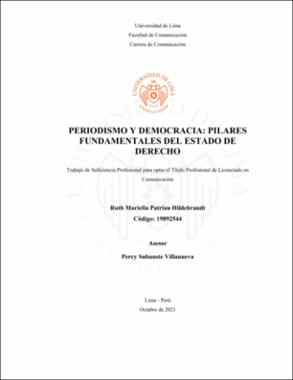 Patriau Hildebrandt, R. M. (2021) Periodismo y democracia: pilares fundamentales del estado de derecho [Trabajo de suficiencia profesional para optar el Título Profesional de Licenciado en Comunicación, Universidad de Lima]. Repositorio Institucional de la Universidad de Lima.https://hdl.handle.net/20.500.12724/15112Editor