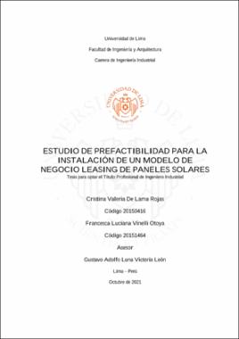 De Lama Rojas, C. V. y Vinelli Otoya, F. L. (2021). Estudio de prefactibilidad para la instalación de un modelo de negocio leasing de paneles solares [Tesis para optar el Título Profesional de Ingeniero Industrial, Universidad de Lima]. Repositorio institucional de la Universidad de Lima. https://hdl.handle.net/20.500.12724/15331Editor